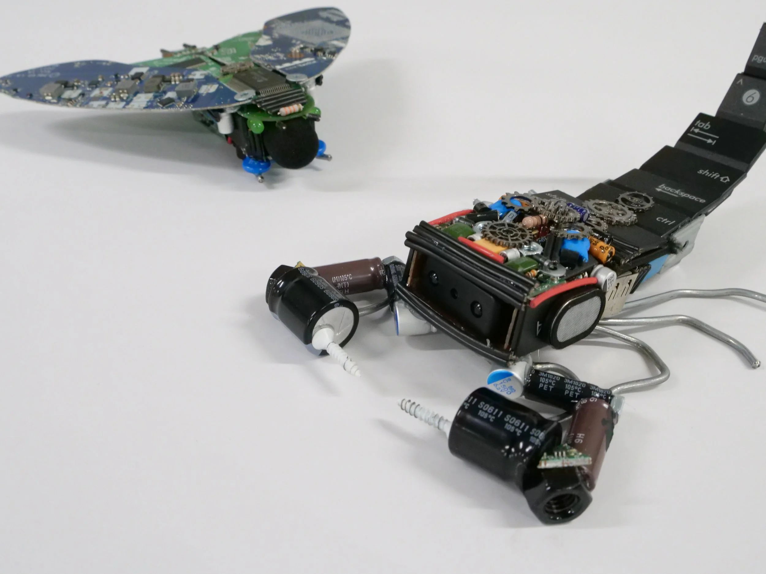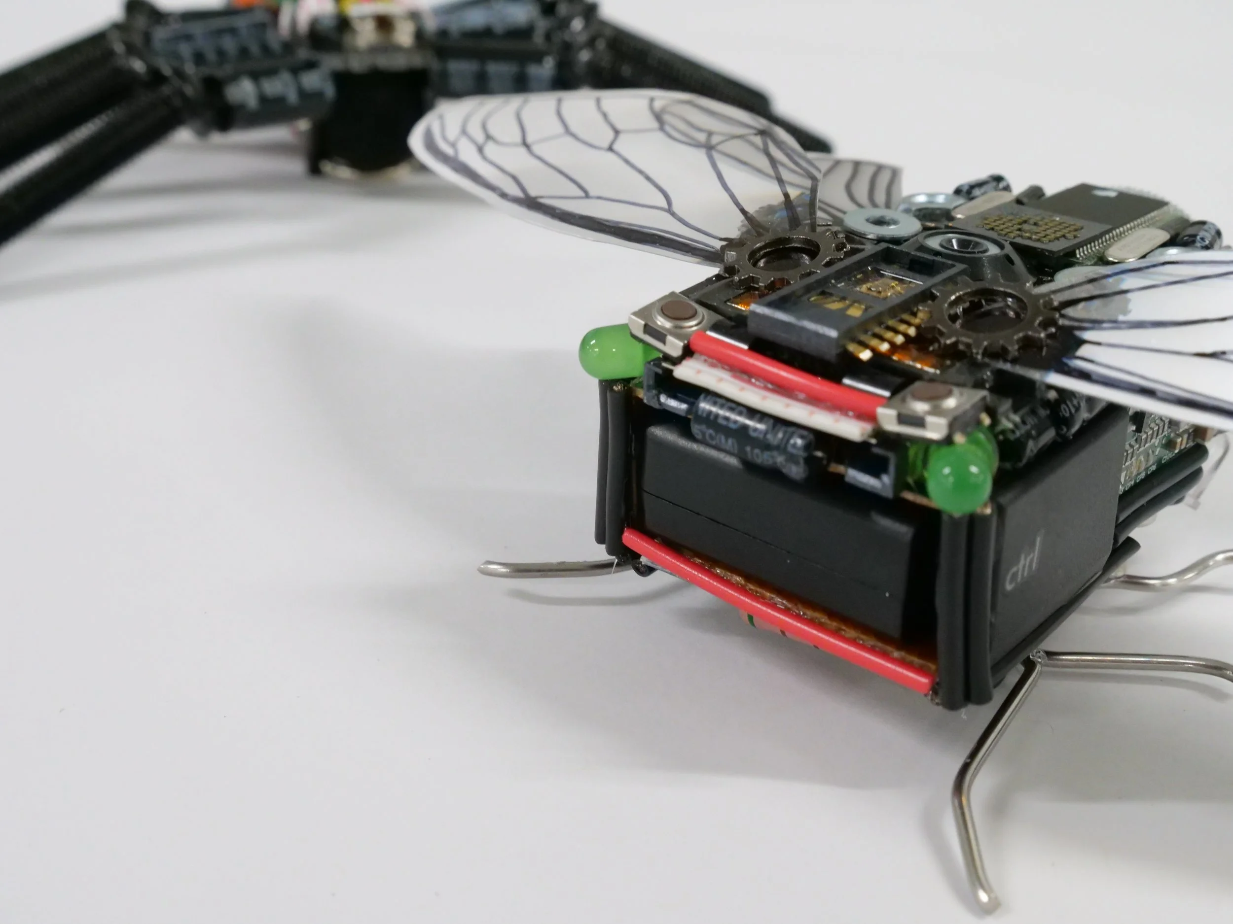 Stylistically, this project was partially inspired by RoboBee X-Wing, developed by Noah T. Jafferis and his colleagues. In the plight of scientists trying to replicate insects, they have been unable to truly capture their delicate and precise bodies. In order for the RoboBee to fly, it requires power, however it is too small to carry a battery. This has been mitigated through the use of solar panels (Breuer, 2019). The RoboBee X-Wing is one centimetre tall and looks nothing like an insect. However, I loved the exposed circuits and cords that truly betrayed any similarity to natural bees. Subsequently, I chose to use recycled electronics, sourced from friends, the Good Sammy’s warehouse and the West Metro Recycling Centre.